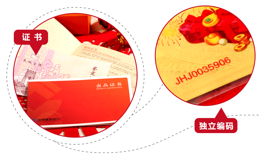 同时,《中国建设银行鸡年压岁金》,每张均有独一无二的收藏证书和防伪编码,让每位小朋友们都收到独一无二的压岁祝福!